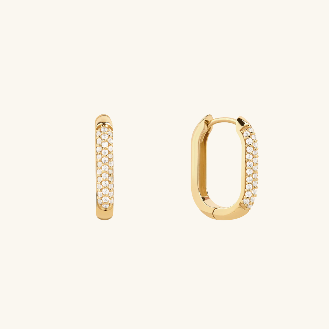 Cette créole rectangulaire en or 18 carats est entièrement pavée étincelants sur deux rangées. Moderne et audacieuse, elle illumine le visage avec élégance tout en affirmant une allure affirmée.