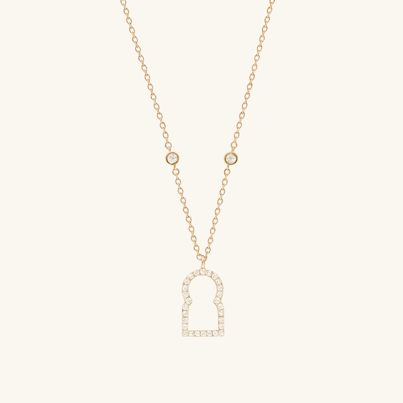 Collier en or jaune, sublimé par un pendentif au design architectural serti .
